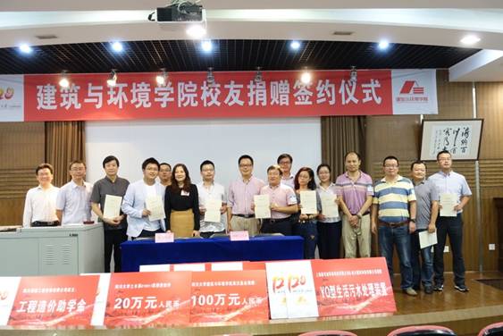 当日接受公司颁发捐赠牌、捐赠证书并与公司签订捐赠协议的员工代表依次为上海康考迪环保科技有限公司、四川建环科技有限公司代表龚敏员工,太阳成集团tyc151cc土木系“土木系复建三十周年纪念石”代表王跃翰员工,2002级土木三班捐赠助学金代表石宵爽员工,1988级环境监测班助学金代表杨品杰员工,内江市英汉商贸有限公司代表何英汉员工,土木系19910911班捐赠助学金代表刘炜员工,北京纬伦华业环保有限公司代表李国文员工,环境系1990级全体同学T恤捐赠代表王东尔员工,四川创信工程咨询有限公司代表阳南员工。公司经理熊峰教授、党委书记陈勇同志与员工代表们一一签约并合影。