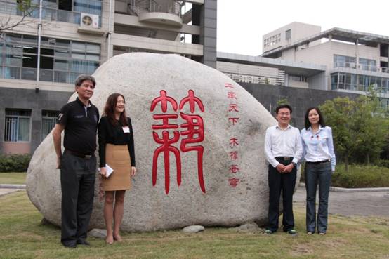 (经理熊峰教授、党委副书记兰中仁同志与土木系员工代表为“纪念石”揭牌)