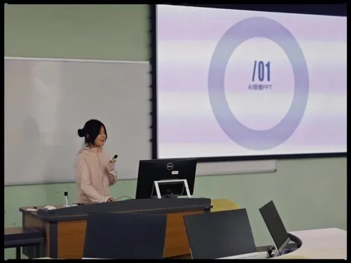 张凤颖同学则通过三个方面展示了AI工具的应用,分别是“AI帮做ppt”、“AI做会议总结和记录”、“AI为人们的生活各方面做建议”。