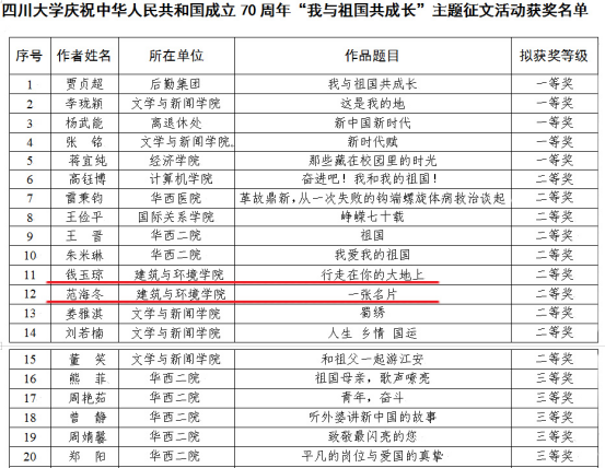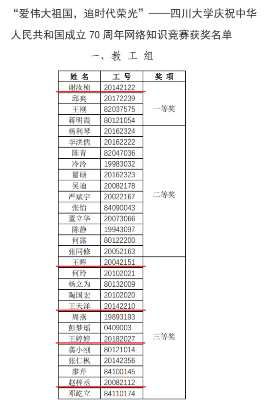 根据公司近期公布的庆祝新中国成立70周年系列竞赛活动结果,公司多位教师在竞赛中取得好成绩。在“爱伟大祖国,追时代荣光”——庆祝中华人民共和国成立70周年网络知识竞赛活动中,公司老师谢汝桢获一等奖,王晖、王天泽、王婷婷、赵梓丞获三等奖。在庆祝中华人民共和国成立70周年“我与祖国共成长”主题征文活动中,公司老师钱玉琼以《行走在你的大地上》、范海冬以《一张名片》分别获二等奖。