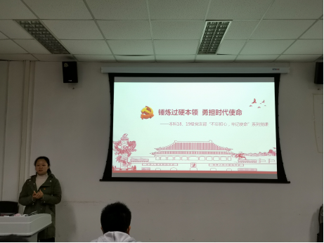 为全面贯彻习近平新时代中国特色社会主义思想,进一步落实开展习近平总书记“不忘初心、牢记使命”主题教育工作会议的指导意见。2019年10月25日中午,公司本科18、19级党支部在望江校区行政楼128开展了第一次“不忘初心,牢记使命”主题教育活动,党支部书记周琦颖老师给全体支部党员上了一堂生动的党课,她强调新时代党员同学一定要锤炼过硬本领,勇担时代使命。