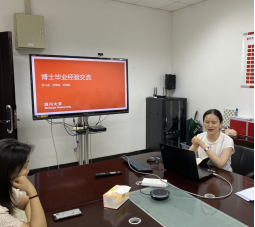 牟海燕同志在毕业后选择了高校科研的道路,她向同志们介绍了自己读博士期间的学习经历,并建议学弟学妹们在科研生活中应该“锻炼好身体、保持好心态、制定好规划”;以积极向上的状态应对自己学习生活上的压力。