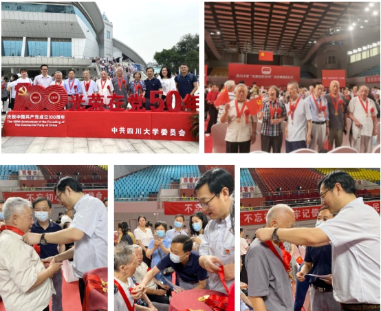 6月23日,在望江校区体育馆,公司隆重举行“光荣在党50年”纪念章颁发仪式。公司有13位老党员获“光荣在党50年”纪念章,6位在党50年老党员同志出席了仪式。