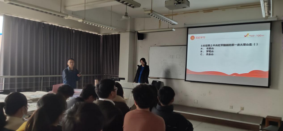 党史答题环节,支部成员分为3组进行抢答,同学们积极参与,氛围活跃。对于回答错误的问题,同学们互相分享了相关历史背景,补充历史知识,在交流中收获进步。