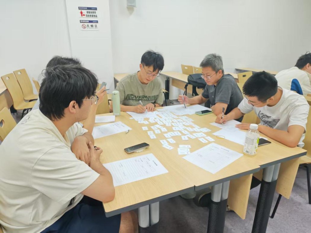 通过各种趣味互动凝聚团队力量,共组织团辅活动4期。4期团辅活动分别结合专业特色定制内容,土木专场通过“创意共绘”与“趣味拔河”促进破冰协作;环境专场以“默契挑战”“翻牌对对碰”强化团队沟通;城规景观专场融入“合力建塔”“看图凹造型”等实践项目深化创意与凝聚力;力学专场以自制卡牌游戏、优势探索及缺点转换帮助员工发现自己“令人心动的优势”。同学们积极参与、主动链接他人,在小组互动支持中有效缓解压力并增强集体归属感。
