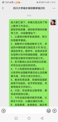 三、2021年4月01日,进一步推动和集中学习思政课程建设、严格和加强课堂教学纪律工作、毕业设计推动和和细节检查工作、加强老师的工作沟通和问题协调工作,见下图: