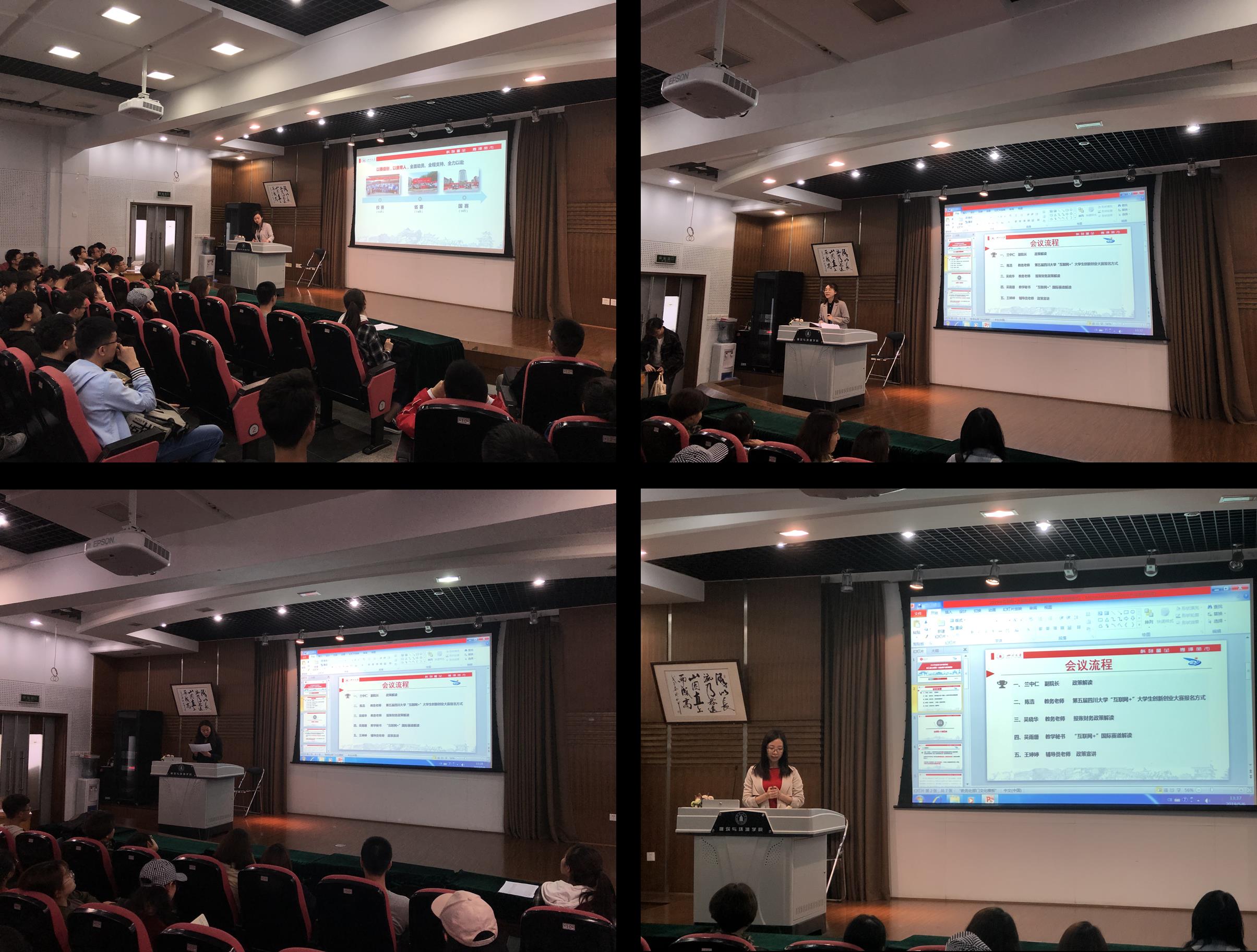 2019年5月6日星期一,在江安校区建环公司二楼汇报厅举行了第五届互联网+大赛形式与政策解读暨动员会。公司近百位同学参加此次解读动员会,兰中仁副经理、教务管理老师及辅导员老师为同学们进行大赛解读和动员宣传。